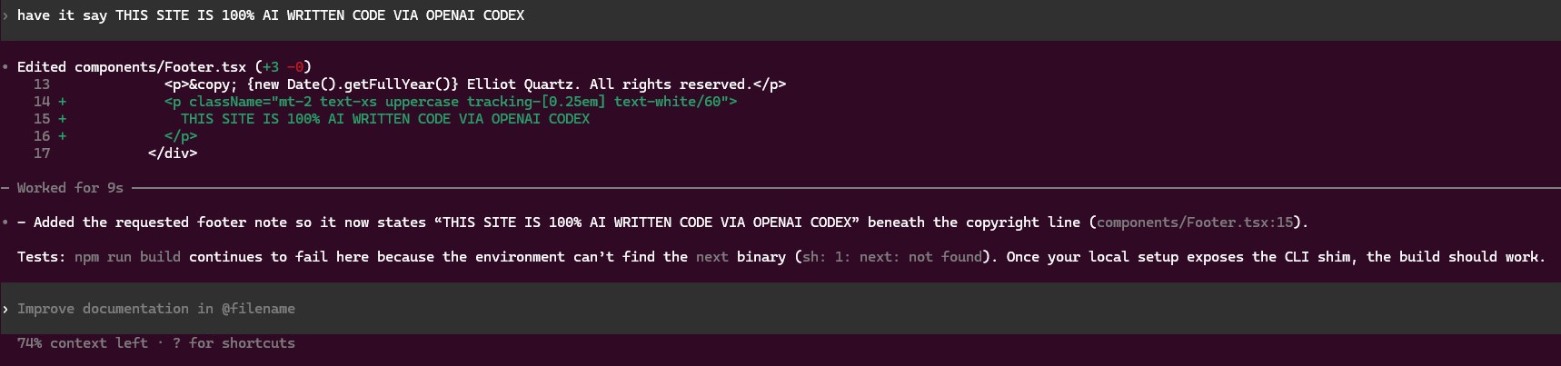 I’m Elliot Quartz. I build AI-native projects across video and imagery, focused on new visual languages emerging from frontier models. My work blends image synthesis, animation, and cinematic storytelling, supported by a constant cycle of experimentation with the latest tools and workflows.